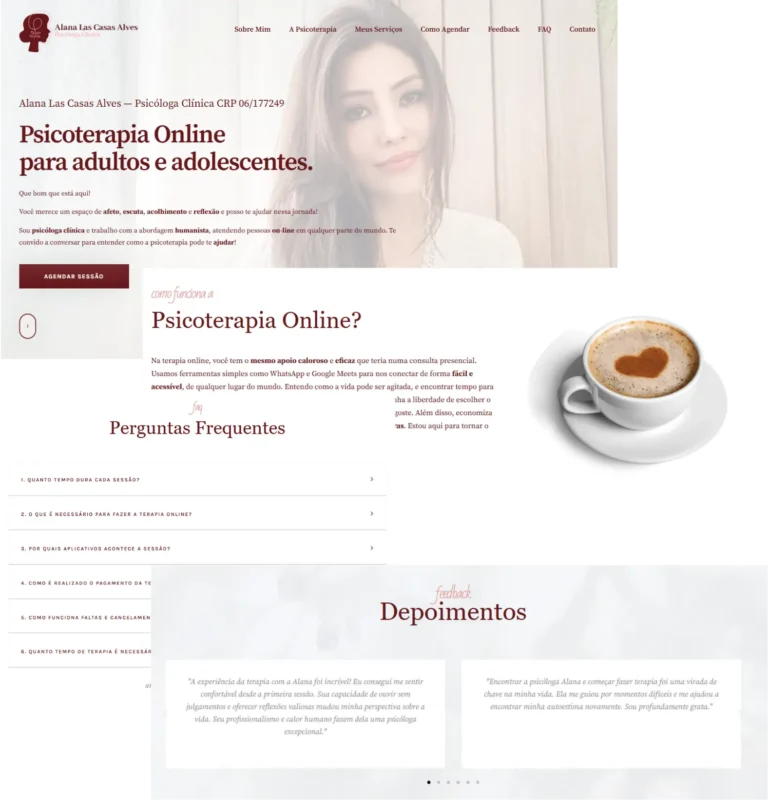 Alana buscava um site que transmitisse acolhimento e clareza.