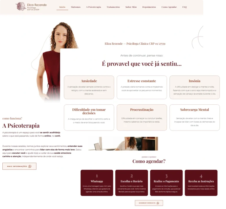 A Eliza buscava um site que unisse autoridade e acolhimento.
