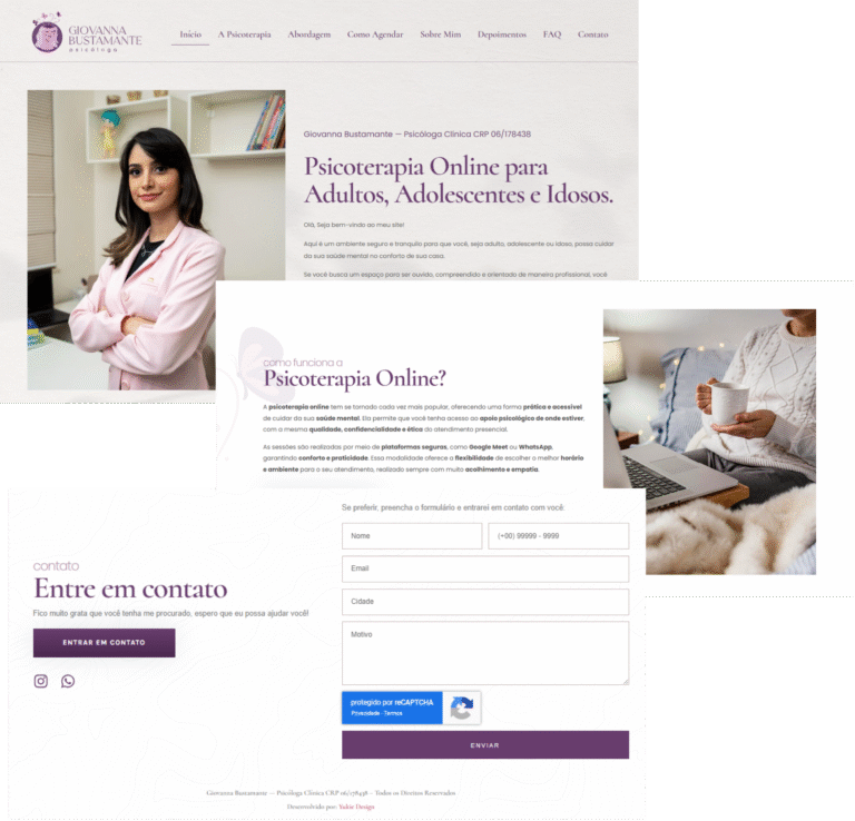 A Giovanna buscava um site que refletisse sua abordagem psicanalítica com sensibilidade e clareza.