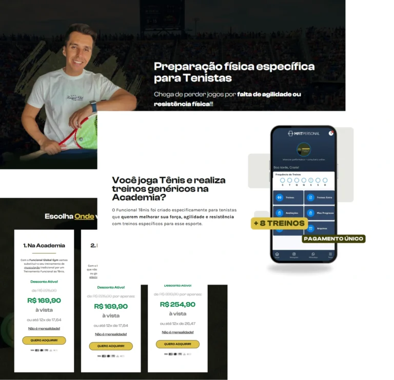 O Thiago buscava uma página de vendas para seus infoprodutos voltados a tenistas.