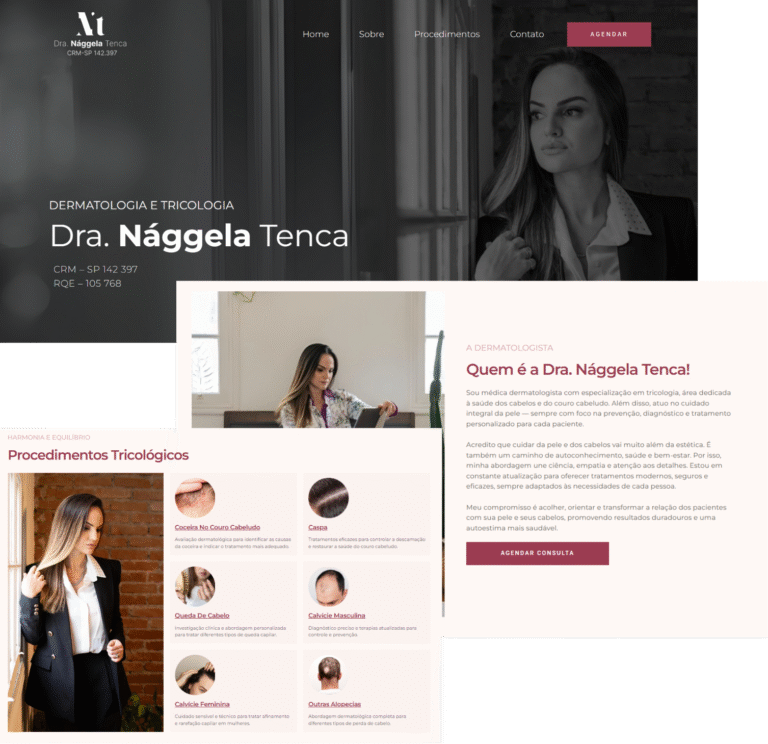 A Dermatologista Nággela Tenca buscava um site que refletisse sua abordagem personalizada e acolhedora na dermatologia e tricologia.