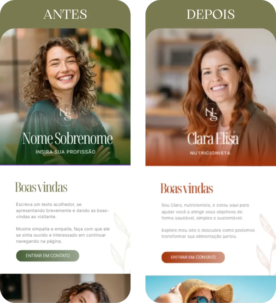 Claro! A ideia é que você personalize o template com a sua identidade visual, e temos tutoriais para tudo isso.